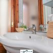 Villa Rosa is a magnificent villa on one level located in Geremeas Residence, right in front of Geremeas Beach (Marongiu Beach), literally two steps from the garden and you are on the beach! The house is located within the private area of the residence, access to which is only permitted to owners of the remote control that opens the bar. Villa Rosa is suitable to comfortably accommodate up to 14 people, having four double bedrooms, two twin bedrooms with bunk beds and four bathrooms plus another double room in the dependance. The property is accessed through a gate which allows you to park cars in the area in front of the house. From the front of the house you enter the large living room where there is a dining area, a new living room with large sofa and TV area, a game area with card table/board games and another sitting room with fireplace. From the opposite side of the living room you access the fully equipped kitchen. From here you access two of the three sleeping areas. The first is composed of a double bedroom, one with a French bed and a bathroom, the second of a double bedroom, one with bunk beds and a second bathroom. The third sleeping area consisting of a double bedroom, a bedroom with a bunk bed and a third bathroom is located on the opposite side of the house, next to the living room. All sleeping areas are equipped with air conditioning / dehumidifier / heat pump, also present in the kitchen. From the dining room, the kitchen and the two living rooms you can access the wonderful veranda that surrounds the house, where there are numerous spaces both for eating and relaxing. Here there is also a brick barbecue, a Sardinian oven and a hot and cold outdoor shower (very convenient for cooling off and rinsing off after being on the beach). The veranda overlooks a wonderful and well-kept garden, the pride of the house. The villa is completed by an annex with a double room with breakfast corner and a fourth bathroom inside A/C is present also in this bedroom.